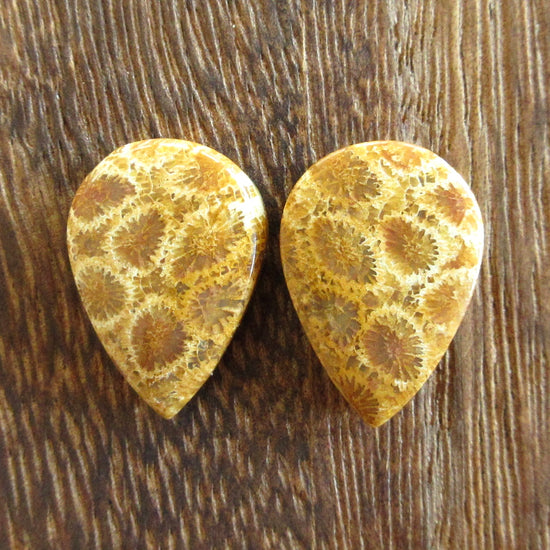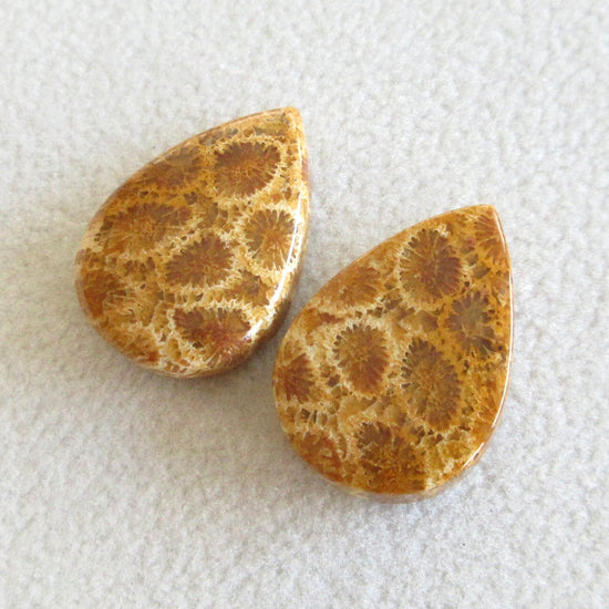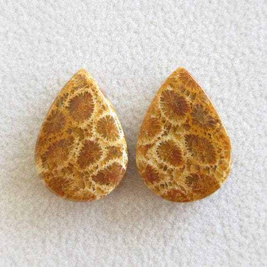 フォッシルコーラル 天然石ルースペア
