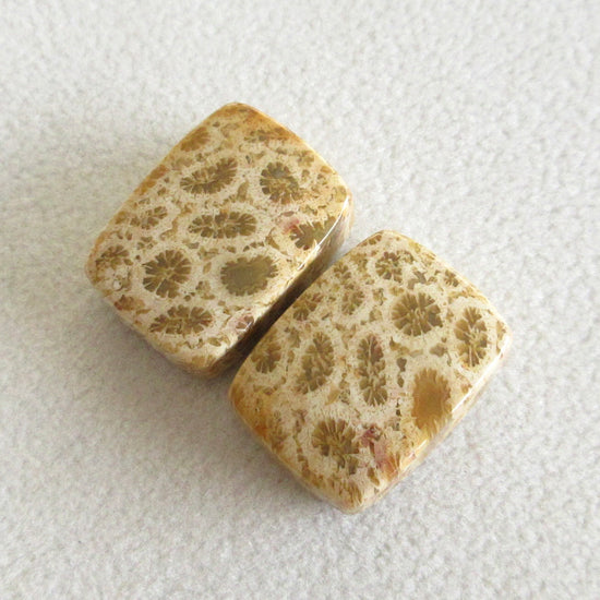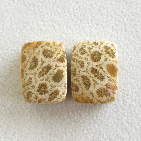 フォッシルコーラル 天然石ルースペア
